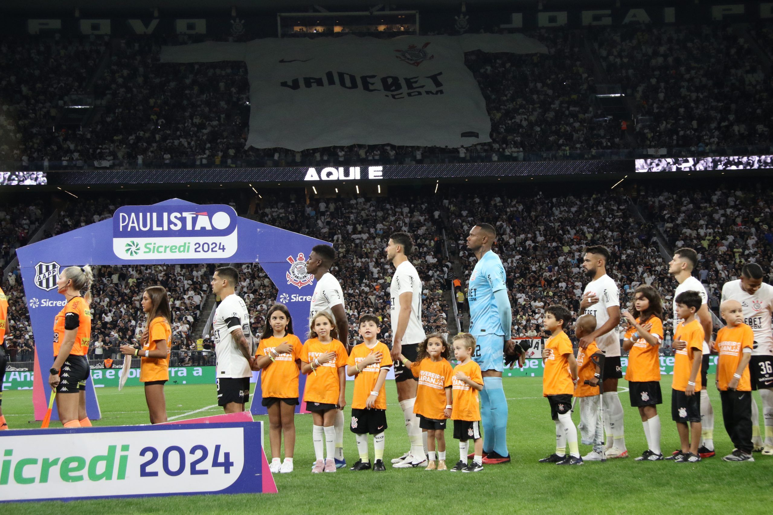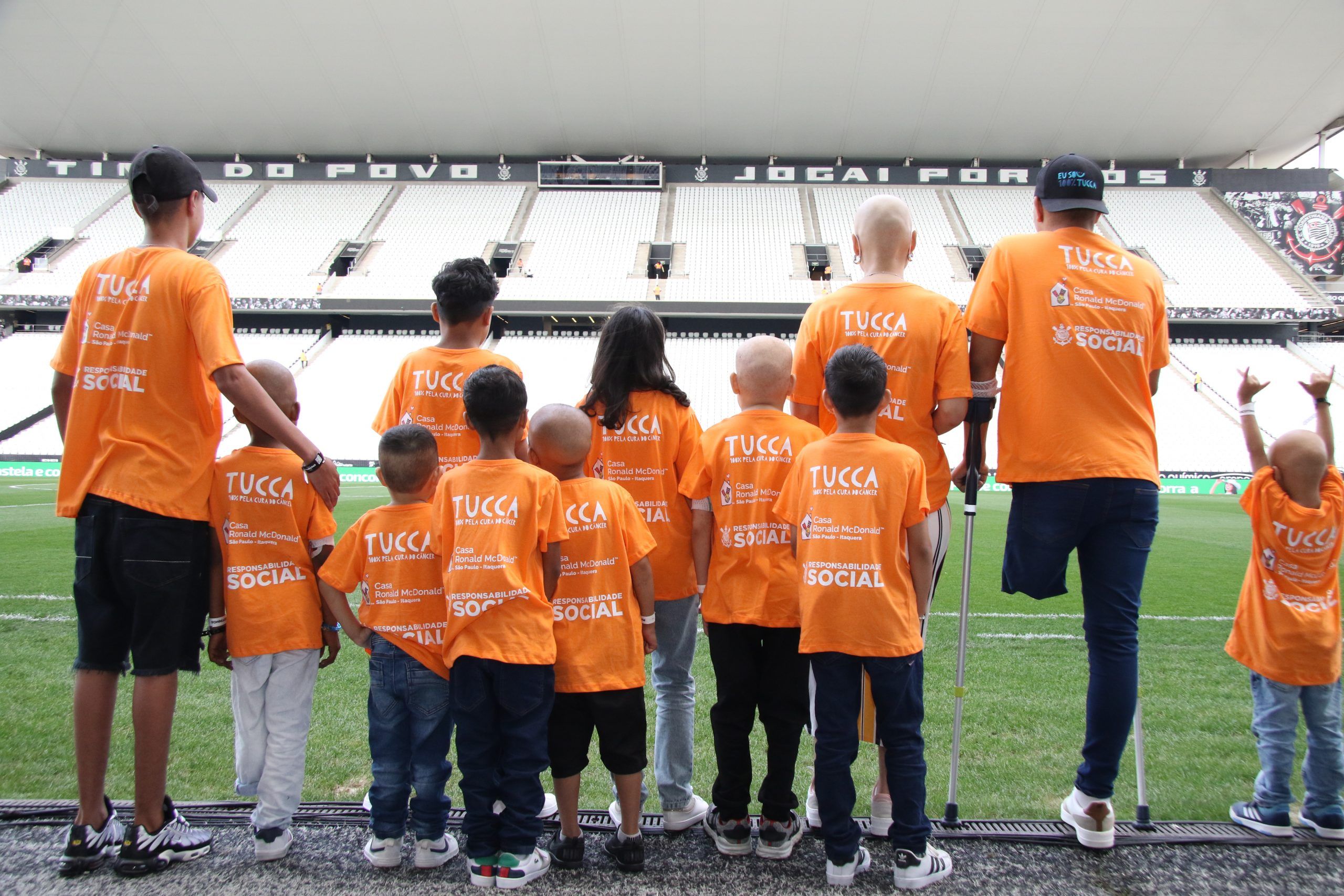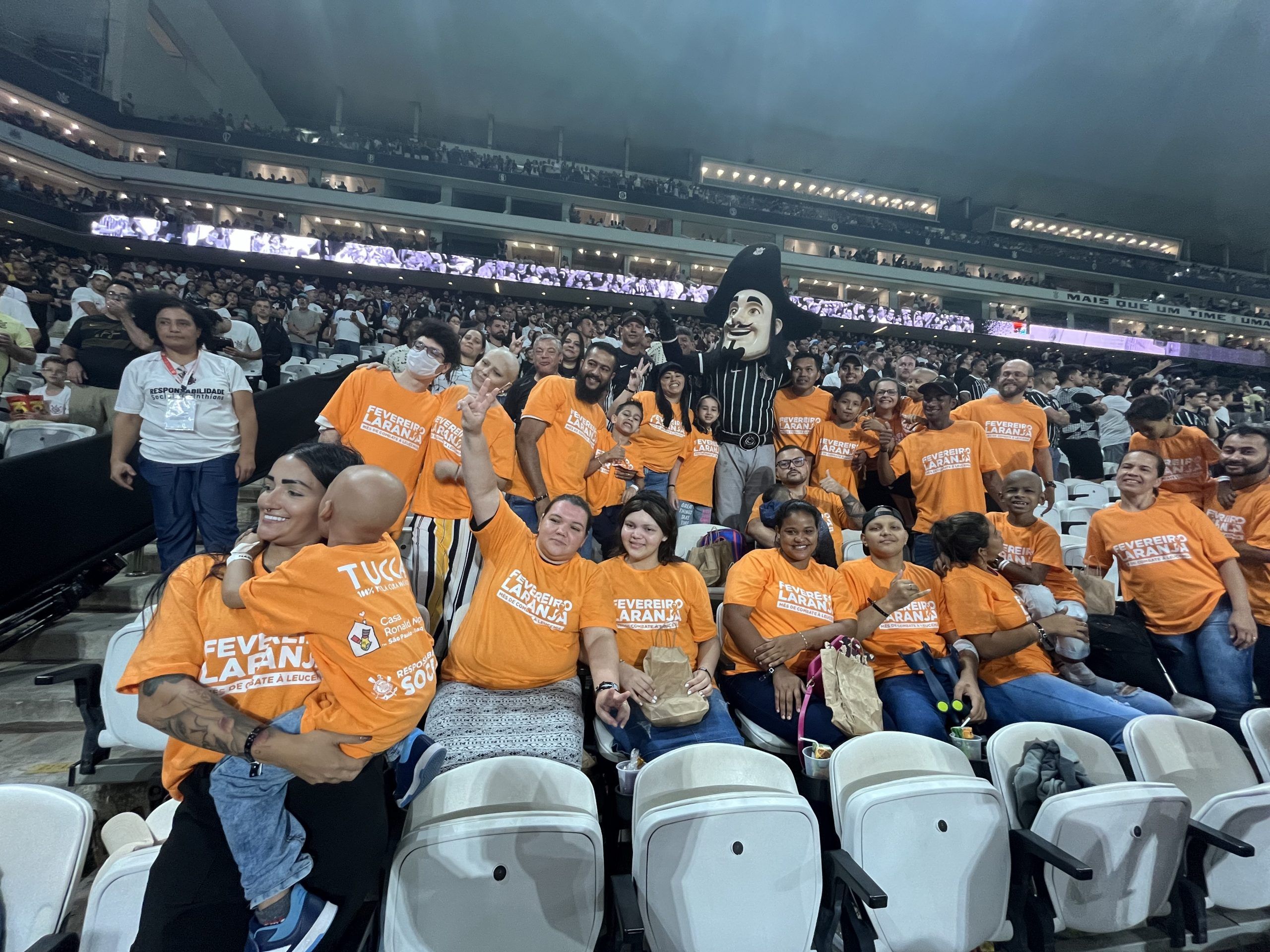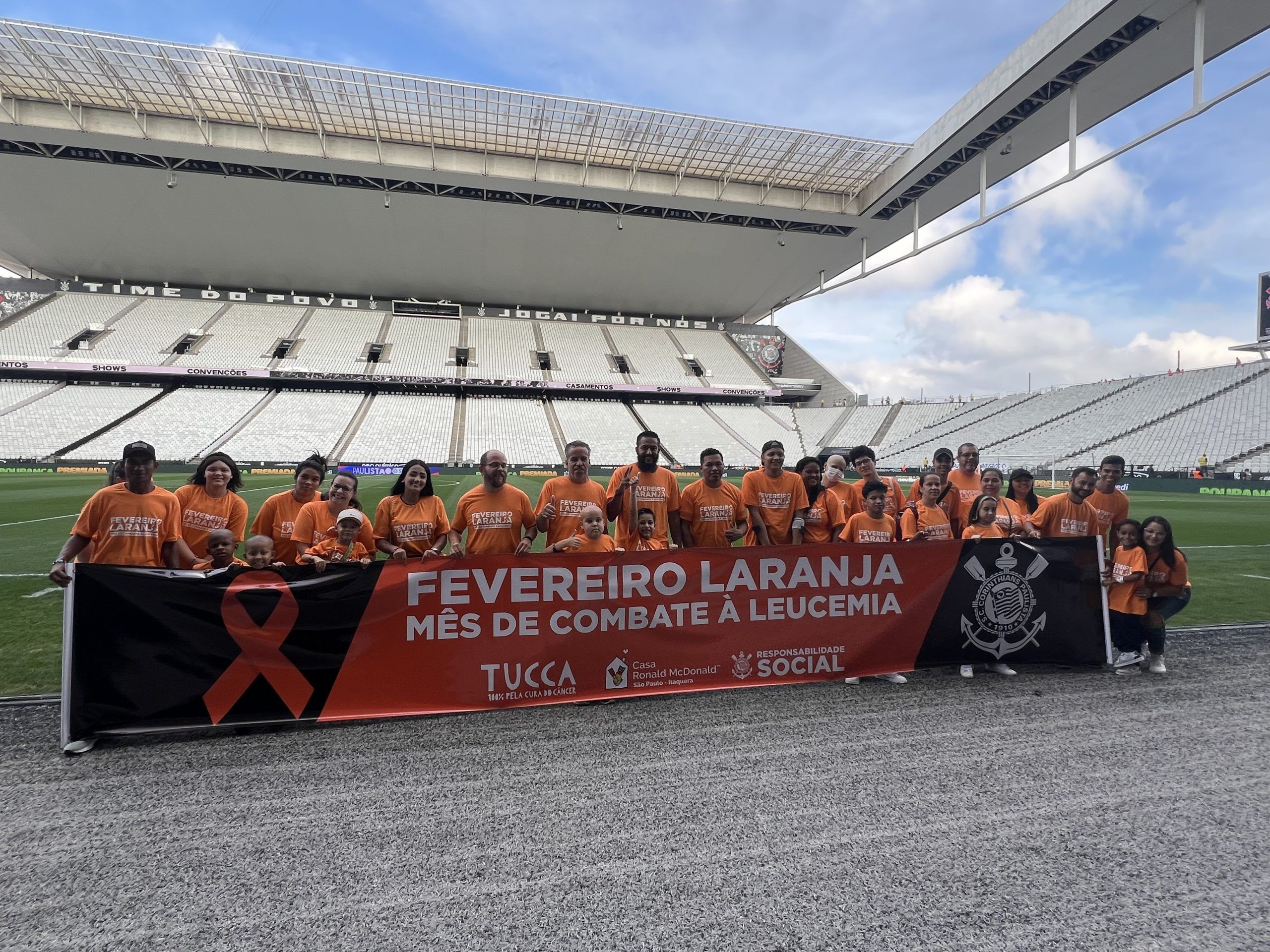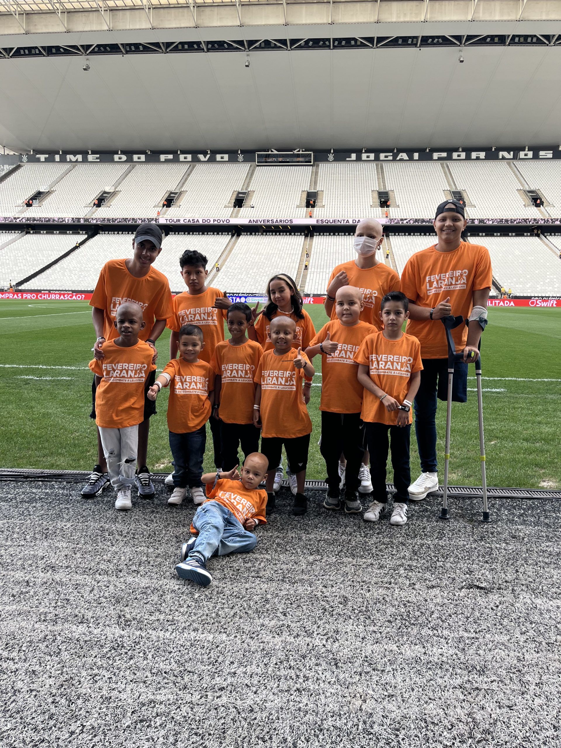 Os pacientes entraram junto aos jogadores do Corinthians no estádio Neo Química Arena, em homenagem ao Fevereiro Laranja. A iniciativa ressalta o poder transformador do esporte, solidariedade e inclusão, além de conseguir reforçar a importância do engajamento em causas sociais.